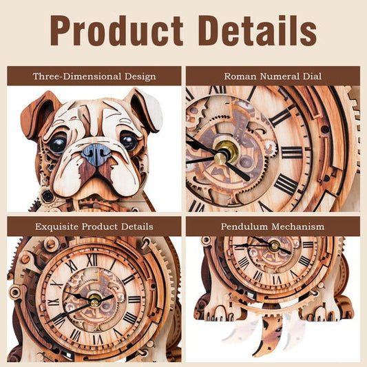 Bulldog – DIY Wooden Clock, 3D Puzzle Craft Kit