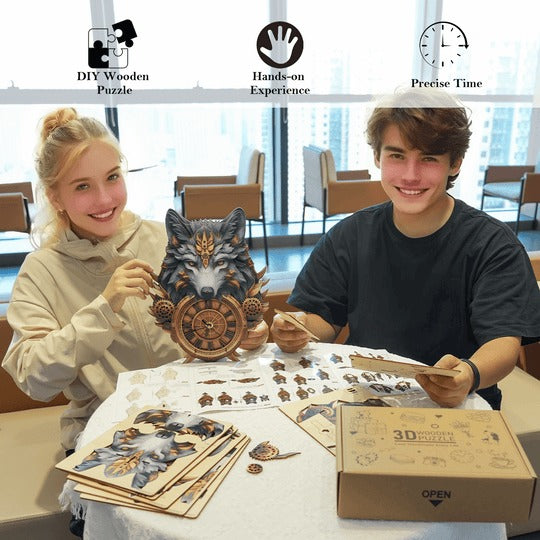 Gray Wolf – DIY Wooden Clock, 3D Puzzle Craft Kit