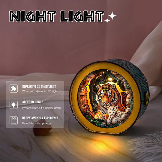 Tiger Mother And Cub In The Jungle Kit- 3D Wooden Puzzle Night Light